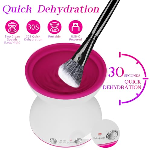 【Clearn and Dehydration 2 in 1】Short press the cleaning button to enter the cleaning mode, you can choose different gears to clean according to different sizes of makeup brushes. Long press and hold for 3 seconds to enter dehydrating mode, which will remove most of the water from your makeup brushes and shorten the drying time. 💥Machine does not dry the makeup brush directly!