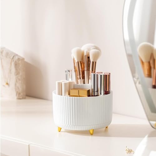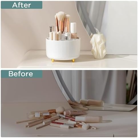 Multi-functional use: The rotation makeup brush holder is suitable for any space, such as bathroom, living room, bedroom, vanity, office, etc. It is small size, has a good effect, can store all your small items, and keeps the space clean and tidy.