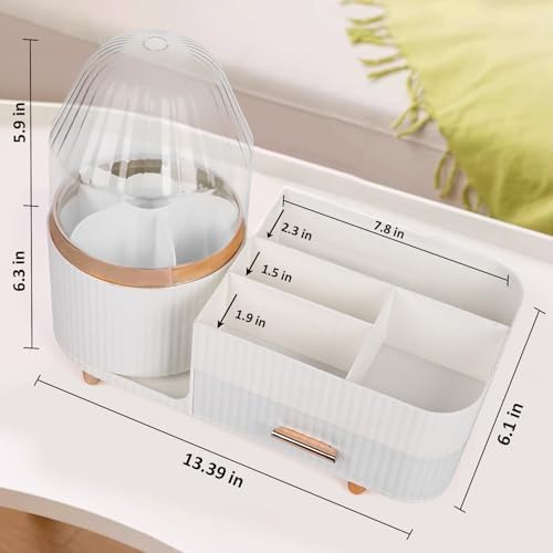 Makeup Organizer for Vanity, Rotating Cosmetics Organizer Countertop with Brush Holder, Skincare Organizer Storage Box with Drawer for Perfume, Beauty, Lipstick, Facial Mask, Bathroom, Bedroom