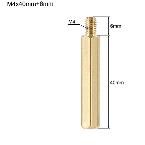 Male to Female Thread Spacer Screws Brass Hex Standoff M4 x 40mm + 6mm PCB Pillar for Drone Quadcopter, Computer and Circuit Board, Pack of 10, Gold