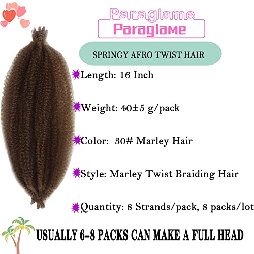 Marley Twist Braiding Hair Pre-Separated Springy Afro Twist 16 Inch 8 Packs Spring Twist Hair Kinky Twist for Faux Locs Crochet Braiding Afro Twist Hair Extensions for Black Women(16Inch, 30#)