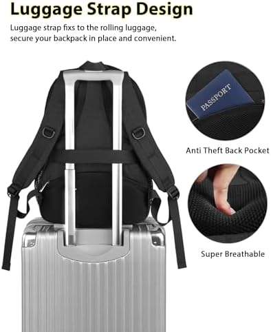 ▶USB CHARGING PORT & LUGGAGE SLEEVE: 15.6 inch theft proof computer backpack for men with external USB charger port and built-in charging cable can conveniently charge your smart phone, tablet and other electronic devices while walking. Featuring the trolley belt on its breathable back, business traveler could fit casual daypack backpacks right on the luggage suitcase, which free your hands