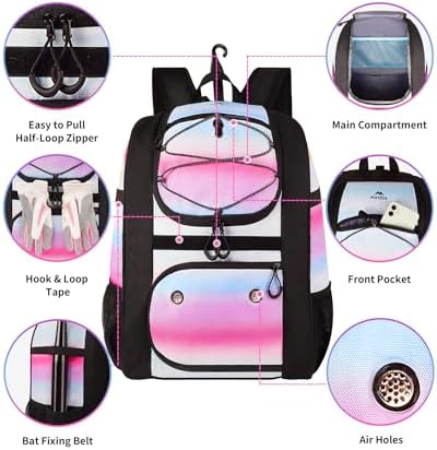 MATEIN Softball Bag, Lightweight Baseball Bat Backpack with Shoe Compartment, Baseball Bag with Fence Hook for TBall Bat & Equipment, Softball Gift Catchers Bags for Women Fit Batting Glove, Helmet