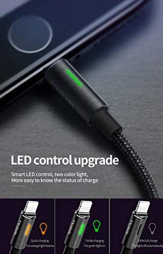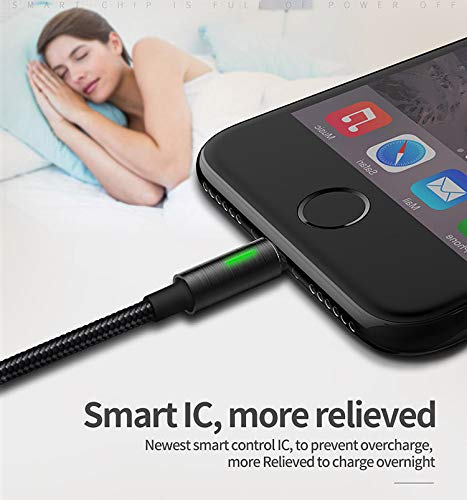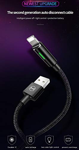 mcdodo Power Off/On Smart LED Auto Disconnect and Auto Recharge Nylon Braided Sync Charge USB Data 6FT/1.8M Cable Compatible New Phone List Below (Black, 6FT/1.8M)