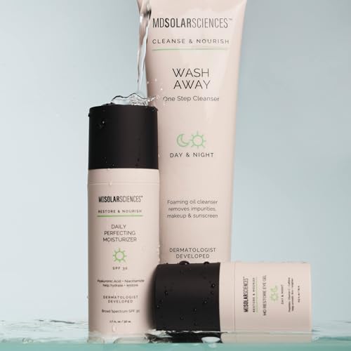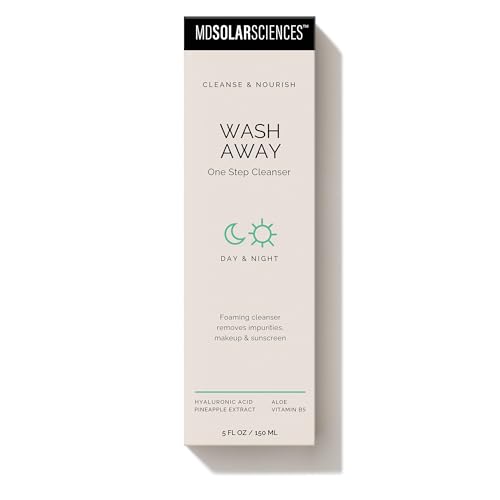MDSolarSciences Wash Away One Step Foaming Cleanser Removes Impurities, Makeup & Sunscreen, Dermatologist Developed Vegan Formula with Hyaluronic Acid, Pineapple Extract, Aloe & Vitamin B5
