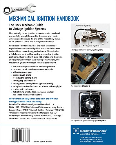 Illustrated with over 100 photos and diagrams and supported by clear, step-by-step instructions, the Mechanical Ignition Handbook features sections on mechanical ignition basics and components, common repairs and recommended tools, adjusting point gap, setting dwell angle, locating the timing mark, finding top dead center, setting static and dynamic ignition timing, using both a standard and an advance timing light, testing coil resistance, and retrofitting breakerless electronic ignition.