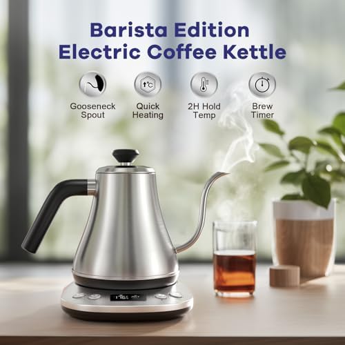 Healthy Kettle Elegantly Designed in California: The electric water boiler looks as graceful as a swan, its precision spout ensures the boiled water pouring at optimal pour-over flow rate. the water boiler is made of BPA free material and food grade 304 stainless steel, no harmful substance will dissolve out even in high temerature, just enjoy a pure taste and healthy life.