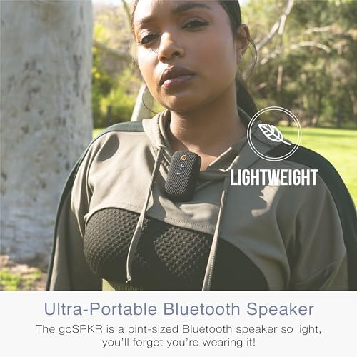 ULTRA-COMPACT + WEARABLE: The goSPKR is a pint-sized Bluetooth speaker that delivers louder, higher-quality sound than your phone’s speakerphone while weighing less than most headphones at just 2.3oz – so light, you’ll forget you’re even wearing it! Yet unlike headphones, the goSPKR allows you to maintain awareness of your surroundings for improved safety during outdoor activities.