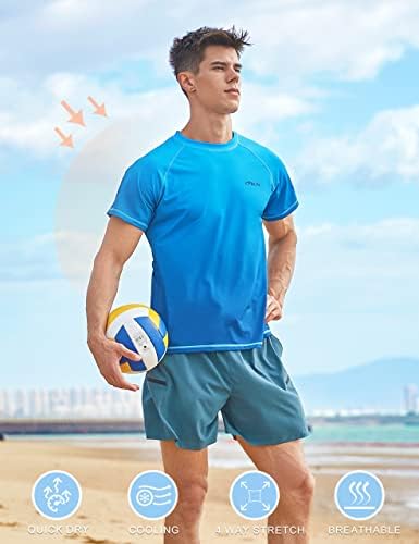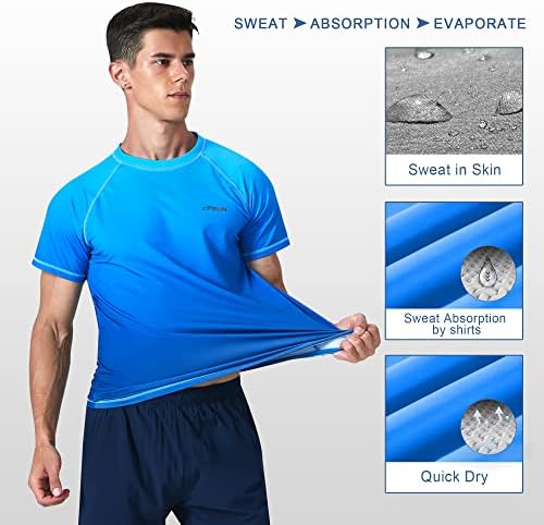 KPSUN Men’s Swim Shirts UPF 50+ UV Protection Short Sleeve Rash Guard Outdoor Performance Tee Stretch Workout Shirts