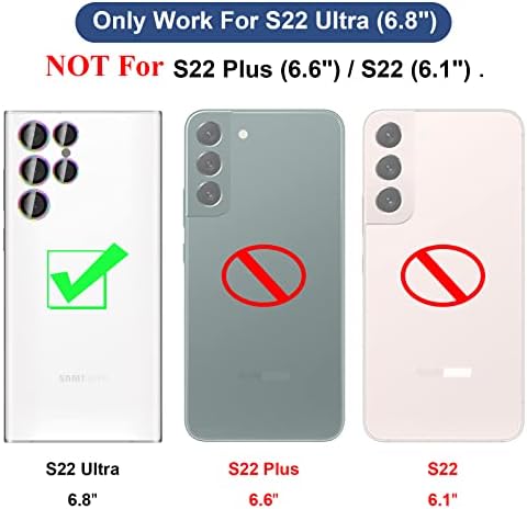 【Perfect Fit for Samsung Galaxy S22 Ultra】—- JOLOJO exclusively designed for Samsung Galaxy S22 Ultra with precise cutouts,compatible with all most cases and covers.Please note:this product included a set of camera protector with a installation tray that make sure the camera easy to install,also have five colour for different smartphone colour.
