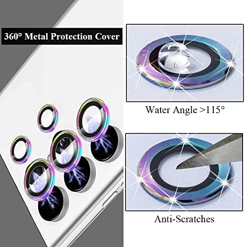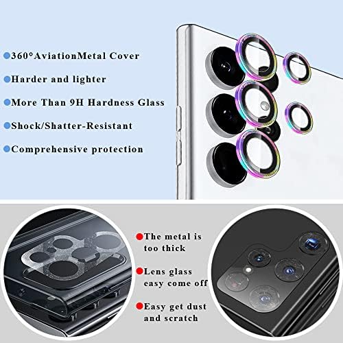 Metal [3+2+Install Tray] Camera Lens Protector Compatible for Samsung Galaxy S22 Ultra (6.8″) Accessories Aluminum Alloy & Lens Tempered Glass [Shatter/Water/Fog/Drop-Proof] – Colourful