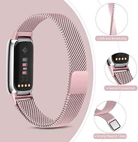 Metal Band for Fitbit Luxe Bands Women Men, Stainless Steel Mesh Loop Adjustable Magnetic Wristband Replacement Strap Compatible with Fitbit Luxe Fitness and Wellness Tracker