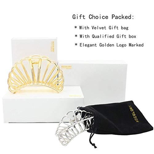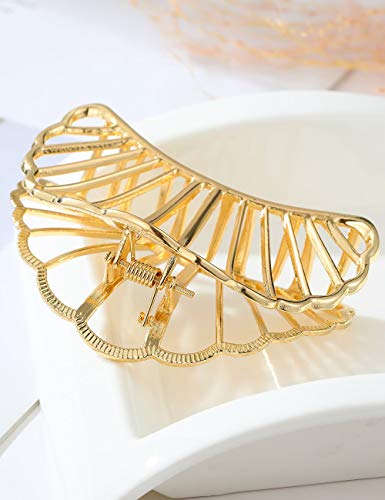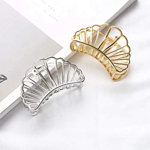Metal Hair Clips Hairgrip Strong Jaw Clips Clamps Non-Slip Hair Barrette For Women Thick Hair (Fan Silver+Fan Pale Gold)