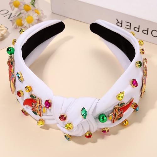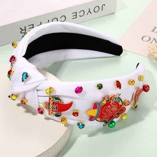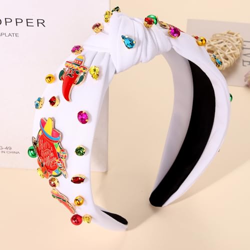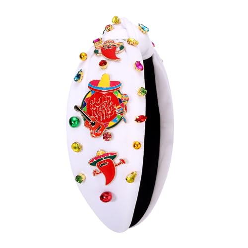 Mexican Headband for Women Cinco De Mayo Headband Beaded Fiesta Knotted Headband Embellished Rhinestone Crystal Wide Top Knot Headband Mexican Holiday Hair Accessory Party Favors Gifts (Chili 5)