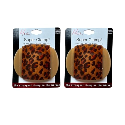Mia Beauty Super Clamps, Medium Size Hair Clips for All Day Strong Hold – Leopard Print 2 Pack