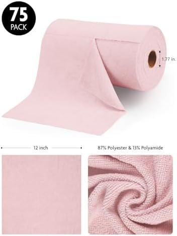 Microfiber Cleaning Cloth Roll -75 Pack, 12×12″, Tear Away Towels, Reusable Washable Rags (Pink)