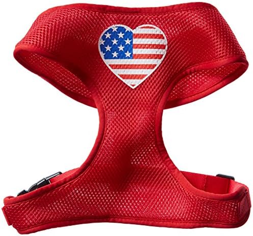 Mirage Pet Products Heart Flag USA Screen Print Soft Mesh Dog Harnesses, X-Large, Red