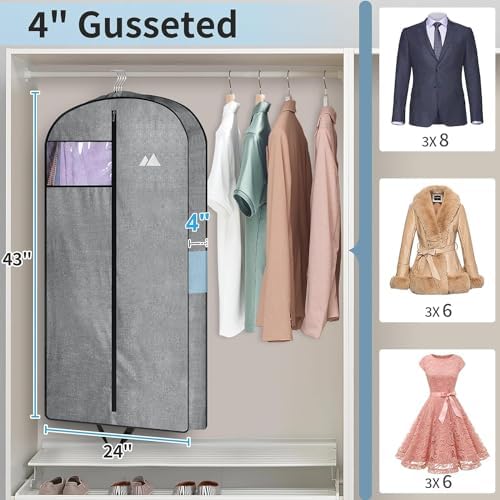 43″ suit covers for men can hold multiple pieces of clothing, suitable for storing shirts, jackets, tuxedos, t shirts, uniforms, fur coats, dresses, etc;