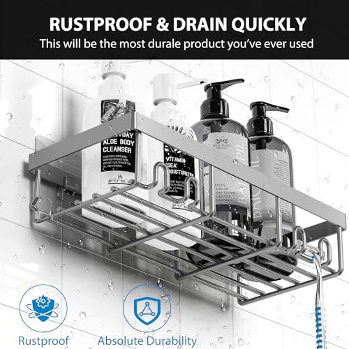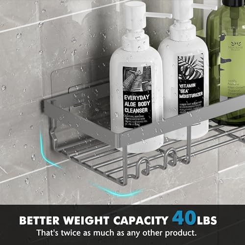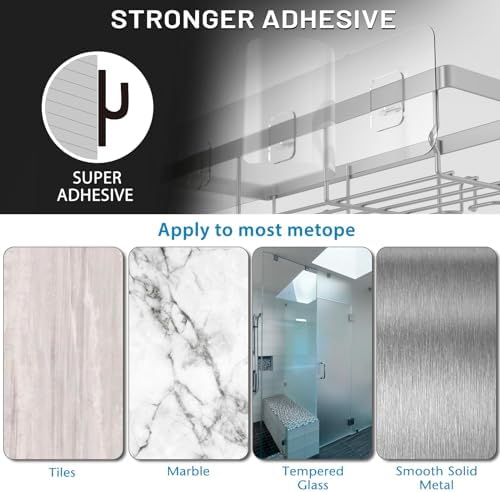 【Stronger Adhesive】The upgraded version of the transparent non-marking adhesive provides you with stronger stability. It can be installed without drilling. The load-bearing capacity can reach up to 40lb, which is twice that of other products on the market. Since it won’t fall from your wall, you don’t have to worry about the loss caused by the shower organizer falling after installation.