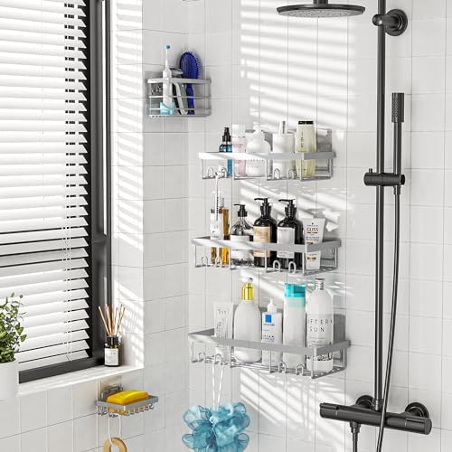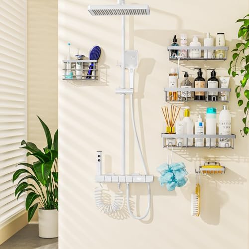 Moforoco Grey Shower Caddy Organizer Shelves Rack – 5 Pack Corner Bathroom Storage Organization, Home & Kitchen Decor Inside RV Accessories, Hanging First Apartment Household Camper Essentials