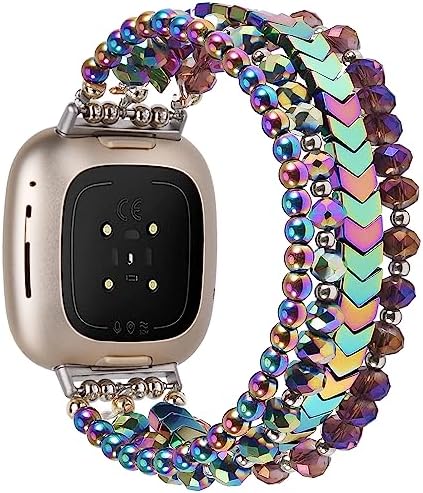 MOFREE Bracelet Compatible with Fitbit Versa 3/Versa 4 Bands/Fitbit Sense/Sense 2 Bands for Women, Handmade Fashion Elastic Beadeds Arrows Strap Replacement for Fitbit Versa 4/Versa 3/Sense 2/Sense