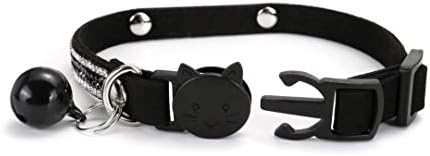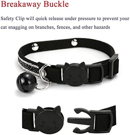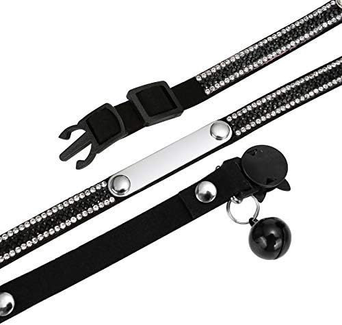 Mogoko Personalized Breakaway Cat Diamond Collar, Customized Bling Kitten Pet Collar with Engraved ID Name Plate and Bell(Black