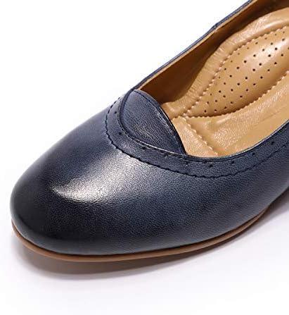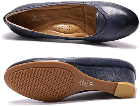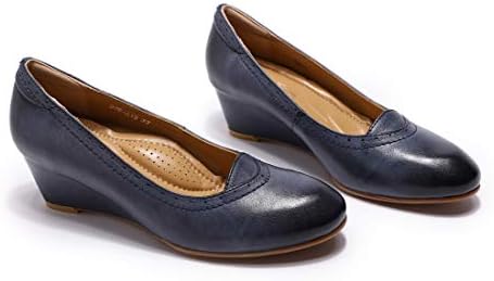 Mona flying Women’s Leather Closed Toe 2 Inch Mid Wedges Heels with Arch Support Round Toe Comfortable Dress Pumps for Women Ladies