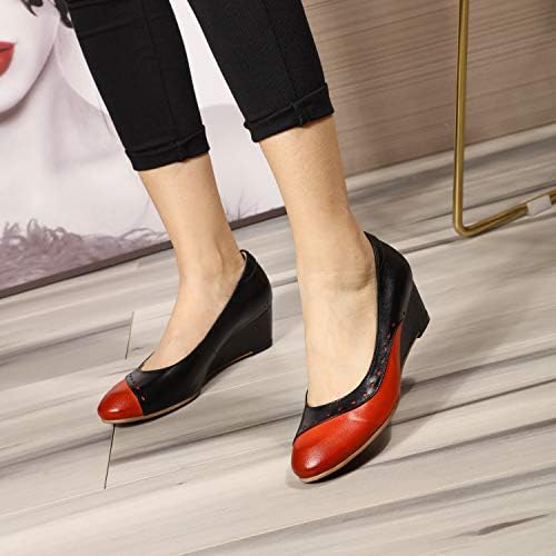 Mona flying Women’s Leather Closed Toe 2 Inch Mid Wedges Heels with Arch Support Round Toe Comfortable Dress Pumps for Women Ladies