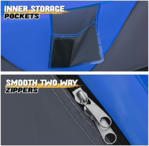 Quick Easy Setup – Instant pop-up tent with pre-assembled poles sets up in 3 seconds, simply open the bag and let go, so easy and enjoyable and set up the tent. Pops open in the blink of an eye into a ready-to-use camping and lounge tent, and easy to fold back into a compact form. Very roomy for 2-3 adults, ideal for a family rest.