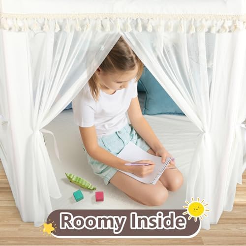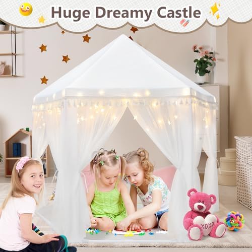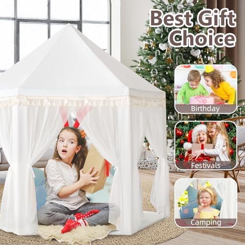 Monobeach White Princess Tent Girls Tassel Decor Large Playhouse Kids Castle Play Tent with Star Lights Toy for Children Indoor and Outdoor Games, 55” x 53” (White Princess Tent with Tassel)