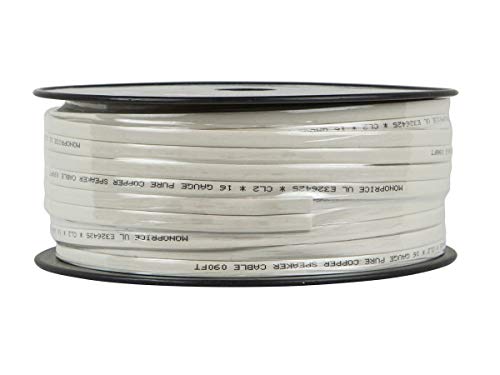 Monoprice Pure Copper Flat Speaker Wire – CL2 in Wall Rated, Jacketed in PVC Material, 16AWG, 100 Feet