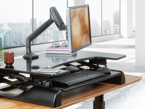Monoprice Single Monitor Adjustable Gas Spring Desk Mount – Black, Supports Up to 34 inch Monitors, 19.8 LBS Display Weight, Smooth Full-Motion Black – Workstream Collection