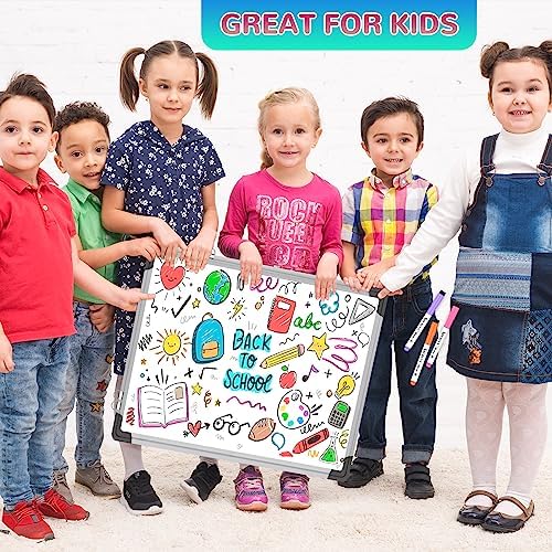 Super Value Pack of Small Whiteboard: The 24 X 18 inches double-sided monthly planner dry erase board set comes with 10 magnetic dry erase markers (include 8 color), 4 magnetic piece, 1 dry eraser and 10 push pins. This big dry erase whiteboard is great size for wall, office desktop, study table, bedside table, class podium and kitchen counter. Double sided wall hangable small magnet dry erase whiteboard easel with solidly built but light weight which makes it suitable for handheld as well.