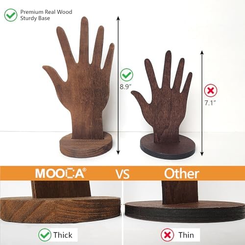 MOOCA 6 Pcs Set Real Wooden Hand Form Jewelry Display, 2-Way Design for Wall Hanging or Standalone Mannequin Finger Hand Display, Premium Real Wood Sturdy Base, Brown Color