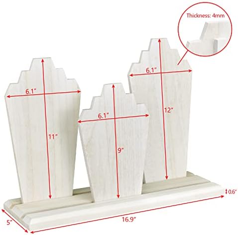 MOOCA Portable Lightweight Multiple Wooden Necklace Display Stand with 2-Row Holder, 3 Removable Displays, and Pegs on the Back, Washed White Color