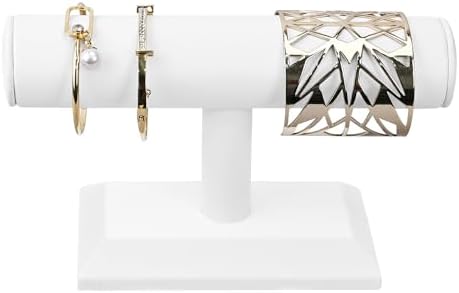 MOOCA T-Bar Wooden Bracelet Holder Display, Watch Hoder, Bracelet Display Stand, Jewelry Stand Organizer, Bracelet Organizer, White Deluxe Leatherette
