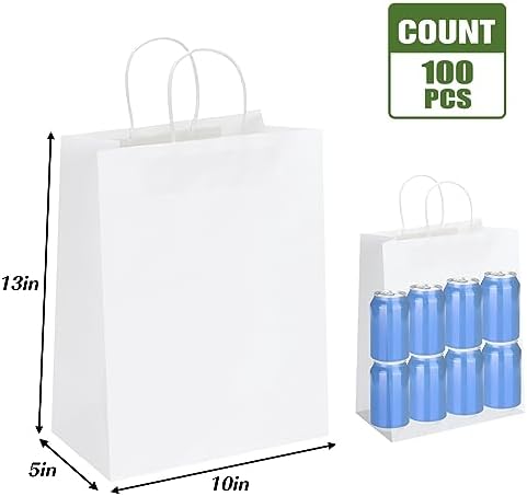 Moretoes Paper Bags with Handles 100pcs 10x5x13 Inches, White Kraft Gift Bags Bulk, Shopping Bags, Retail Bags for Small Business, Birthday Wedding Party Favor Bags, Merchandise Bags