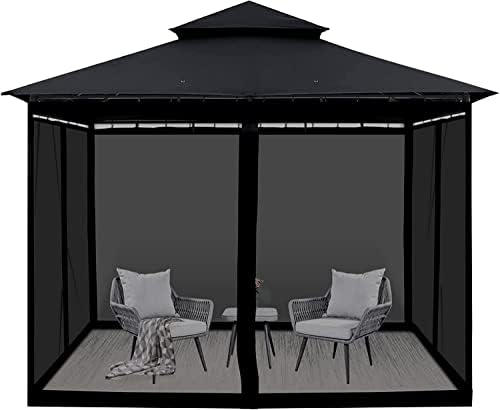 Mosquito Net for Outdoor Patio and Garden, Screen House for Camping and Deck, Gazebo Screenroom, Zippered Mesh Sidewalls for 10x 10′ Gazebo (Dark Black)