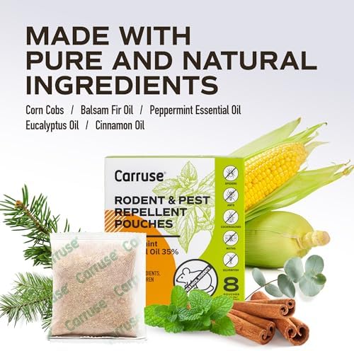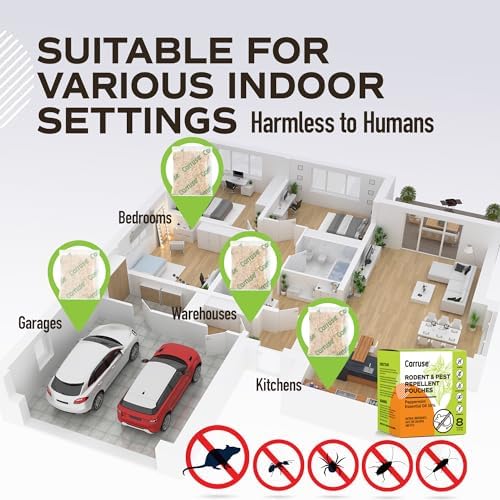 Mouse Rodent Repellent Peppermint Oil: Home Pest Control Pouches for Rats/Squirrel/Spiders/Moths/Ants/Roaches/Silverfish Deterrent – Extra-Strength Mice Away Repellent Indoor & Outdoor (8 Count)