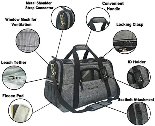 Zippers – These are one of my pet peeves as the zipper quality can turn a fantastic carrier into a loser very fast. When the zipper breaks at the airport or even in your car your carrier of choice becomes basically worthless. Make sure the brand you are looking at includes hi quality zippers from a reputable zipper brand. My totes are all designed with only premium brand zippers, and I improve and upgrade them often as new and better versions come along including the Premium Brand Auto Self Locking Zippers included on this model. They cannot be opened from the inside and are so much better than the older fragile and unreliable clasps of the past.Carrier Structure – Soft Sided Pet Carriers by definition are frameless and are mostly only supported by thin steel wire running along the edges and sides of the tote. Keep in mind when you look over images in a listing on any product those will be taken to show off the product in the best possible way, and are often edited to improve the look of the product image. It is very hard to see differences in materials and structure in a product image, but all of my totes are designed with a very strong waterproof nylon material that is also used in the manufacture of military grade parachutes. The materials used help to avoid the sagging, wrinkled look and give the totes additional structure.Pet Safety & Comfort – Lastly, but the most important feature. The pet tote you choose should have locking zippers and very strong resin mesh. They should have a leash tether to attach a leach and to insure your pet can be secured while stressed during travels. They should have well designed and secure carrying straps. They should have a comfortable bedding pad. All of Mr. Peanut’s tote designs include all of these and more. I also add a thick and plush faux fleece pad for your pet’s comfort.