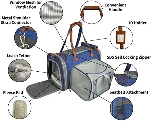 Mr. Peanut’s Expandable Airline Approved Soft Sided Pet Carrier, Low Profile Gold Series Tote, Premium Brand Self Locking Zippers, Plush Faux Fleece Bedding with a Sturdy Plywood Base (Deja Blue)