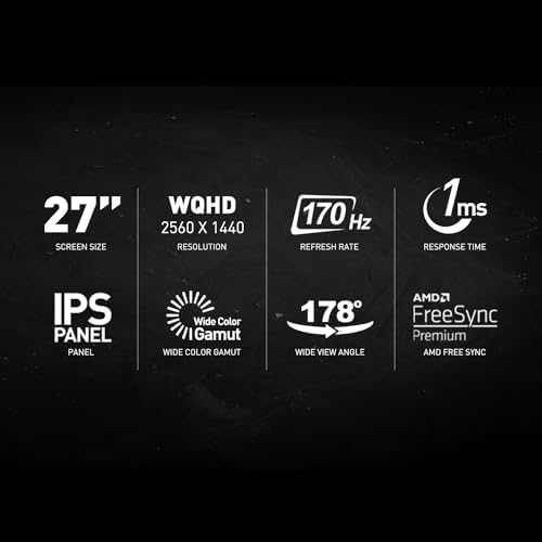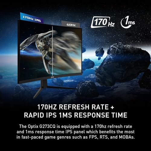 MSI G273CQ, 27″ Gaming Monitor, 2560 x 1440 (QHD), VA, 170Hz, FreeSync Premium, HDR Ready, HDMI, Displayport, Tilt, Black