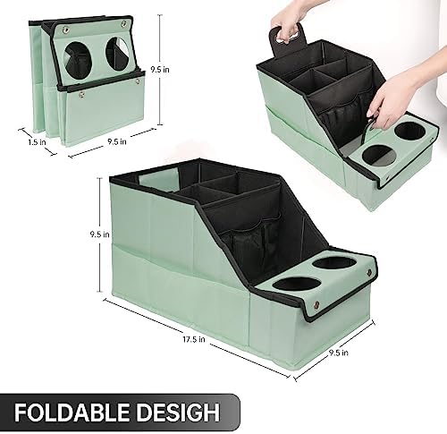 MULISOFT Car Seat Organizer – Backseat Car Organizer with 11 Storages Compartments and 2 Cup Holders, Green
