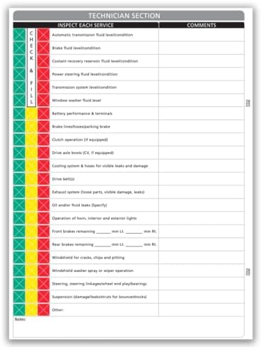 Multi-Point Inspection Form – Compatible with Kia 2 Part Carbonless Vehicle Checklist – Manufacturer Recommended Inspection Report – 8-1/2″×11″ Edge Glued – White, Canary (Pack of 250)