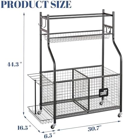 Mythinglogic Sports Equipment Garage Organizer,Garage Ball Storage for Sports Gear and Toys, Rolling Ball Cart with Wheels for Indoor/Outdoor Use