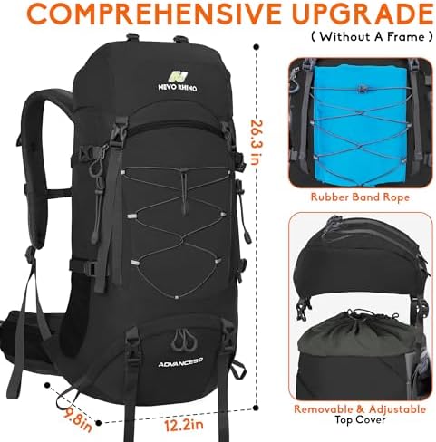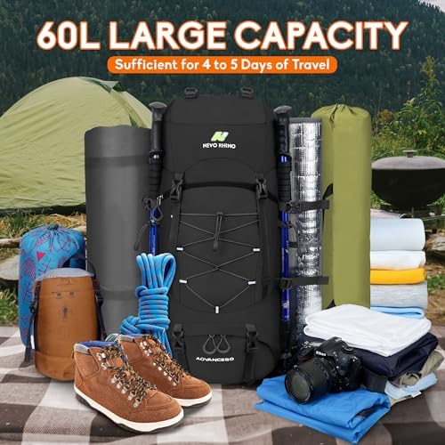 N NEVO RHINO Waterproof Hiking Backpack 50L/60L, Camping Backpack with Rain Cover, Hiking Travel Mountaineering Backpack