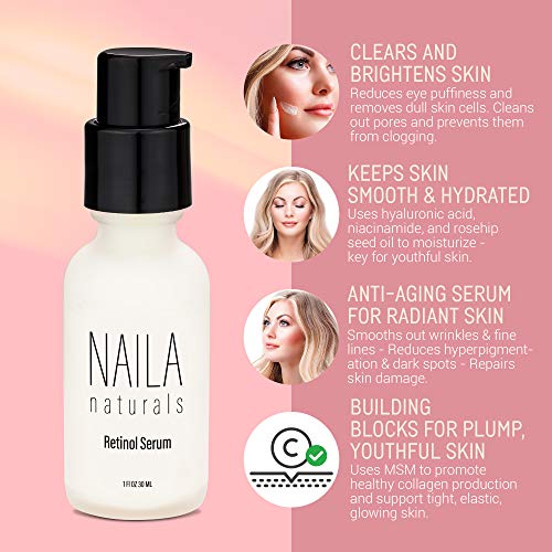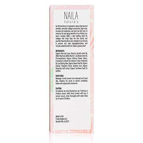 Naila Naturals Retinol Serum – Hydrating Anti Aging Face Serum And Retinol Firming Serum – ORGANIC ingredients – Collagen Retinol Serum – All Natural Skin Care – Gentle Retinol-Made in USA