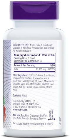 Natrol Beauty Biotin 10000mcg, Dietary Supplement for Healthy Hair, Skin, Nails & Energy Metabolism, 60 Day Supply, 60 Strawberry-Flavored Fast Dissolve Tablets (Pack of 3)