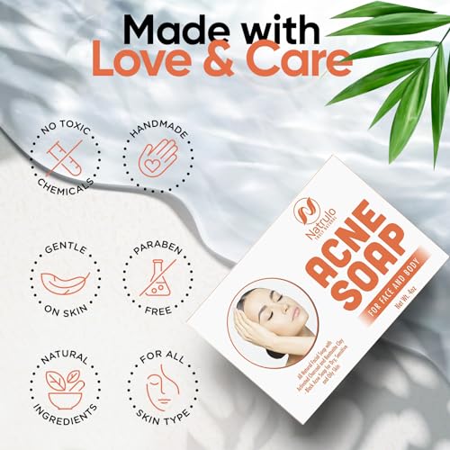 Natrulo Acne Soap Cleansing Bar for Face & Body – Black Activated Charcoal Soap with Bentonite Clay for Dry, Sensitive & Oily Skin – Black Acne Facial Cleanser for Pimples & Scars Made in USA