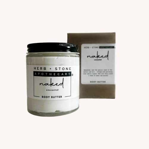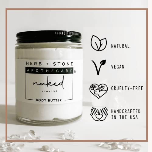 Natural Body Butter for women & men, Organic Body Lotion For Dry Skin, A Non-greasy Hydrating Moisturizer – Herb + Stone Apothecary Crystal Infused Body Skin Care Products – Handcrafted In USA (UNSCENTED – clear quartz)